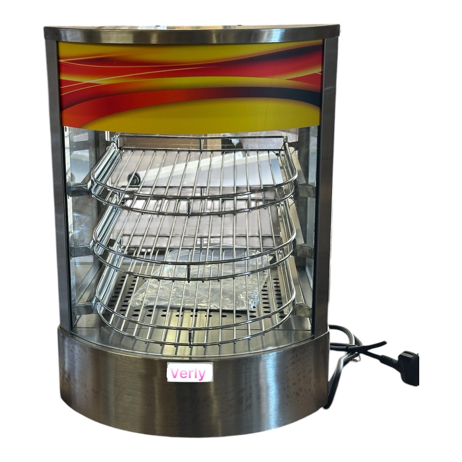 Visibility from All Angles: The transparent curved glass design ensures that your food products are visible and enticing from every perspective, drawing customers in with its irresistible appeal.