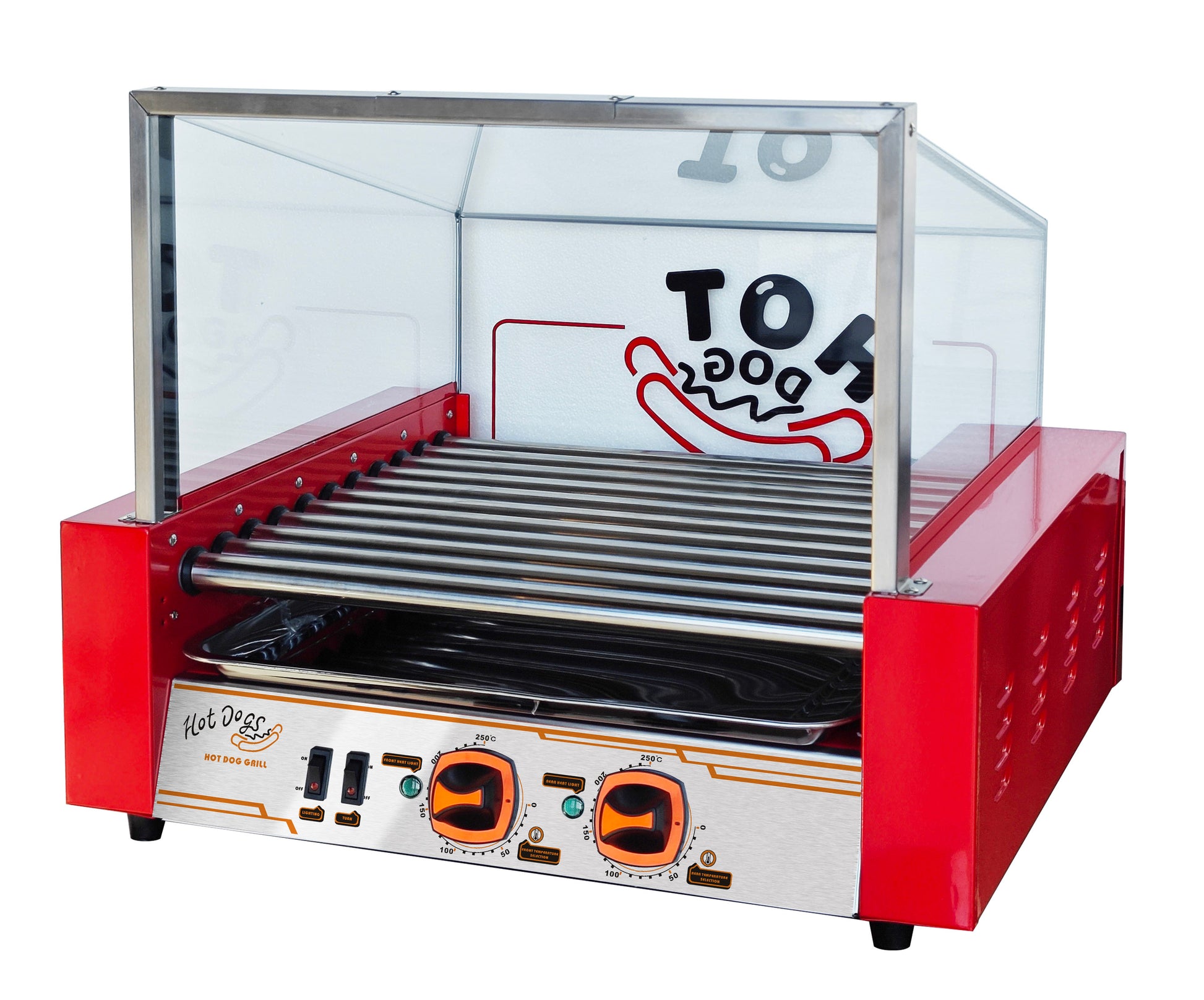 Commercial Electric Hot Dog Roller Grill Machine – 11 Rollers with Glass Cover